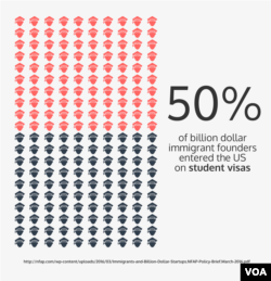 A study from the National Foundation for American Policy, a non-partisan think tank, found that 44 of the 87 startups valued over $1 billion were started by immigrants. Of these companies, almost half of the immigrants came to the United States as an international student.