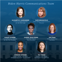 On Sunday, Biden and Vice President-elect Kamala Harris named an all-woman communications team, to be headed by campaign communications director Kate Bedingfield and Jen Psaki as press secretary.