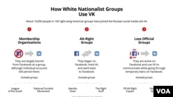 On the other hand, legacy membership organizations such as neo-Nazi groups "don't mind being on VK because that's where they're going to grow their community," Squire said.