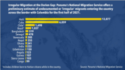 That's up from almost 6,500 last year, when COVID-19 restrictions slowed movement globally. Irregular border crossings into Panama had soared from under 7,000 in 2017 to almost 24,000 in 2019.