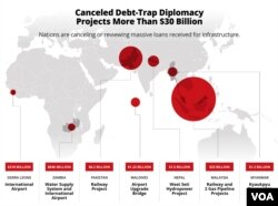 In late August, Malaysia's newly elected Prime Minister Mahathir Mohamad canceled more than $20 billion in Belt and Road projects for railway and pipelines, and Pakistan lopped another $2 billion off plans for a railway following a decision late last year to cancel a $14 billion dam project, citing financial concerns. Nepal canceled its dam project last month and Sierra Leone announced last week that it was dropping an airport project over debt concerns.