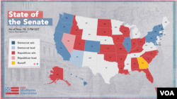 One of the remaining races will be decided in a runoff election on December 6 in the southern state of Georgia between Democratic Senator Raphael Warnock and his Republican challenger, former football player Herschel Walker. With a third candidate in their contest winning 2% of the vote, neither Warnock nor Walker crossed the 50% threshold required to win the seat.