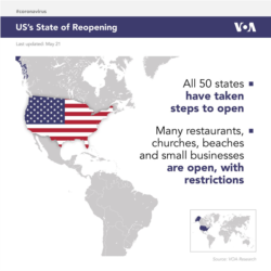 Last week Tennessee relaxed more social-distancing restrictions, allowing restaurants and retail stores to lift capacity restrictions and enabling attractions and large venues to reopen with social-distancing restrictions in place. As of Friday, all 50 U.S. states had begun easing some restrictions.