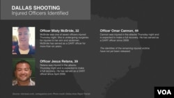 Snipers in Dallas carried out a coordinated attack targeting police officers during a demonstration against police violence late Thursday. Five police officers have been killed and at least six others were wounded in an ambush in the city's downtown. Authorities say they are releasing only limited information about the three suspects in custody while the criminal investigation continues, but say so far there is no evidence that the attack is linked to international terror groups.