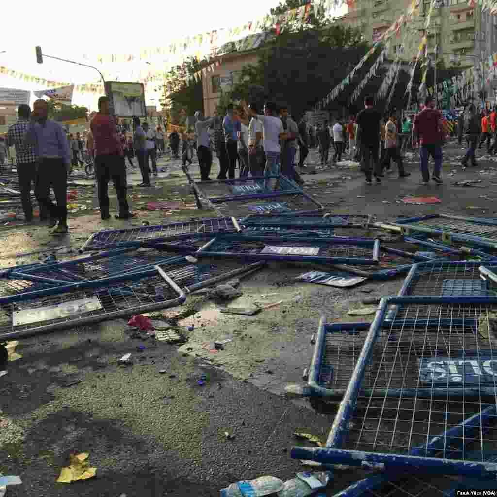 Two explosions ripped through an opposition political rally in Diyarbakir, Turkey, Friday, two days before key parliamentary elections. At least two people were killed and 50 people were injured in the blasts, which came in the early evening in this stronghold of the pro-Kurdish HDP party.