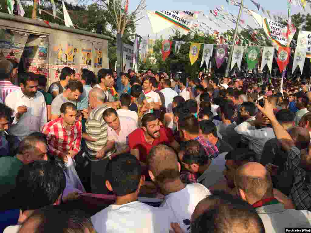 Two explosions ripped through an opposition political rally in Diyarbakir, Turkey, Friday, two days before key parliamentary elections. At least two people were killed and 50 people were injured in the blasts, which came in the early evening in this stronghold of the pro-Kurdish HDP party.