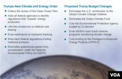 Trump's 2018 budget proposal slashes EPA funding by 31 percent, including an almost total cut of climate research funds. Trump's budget director, Mick Mulvaney, told a White House briefing, "We're not spending money on that anymore."