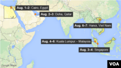 He will also attend a forum in Kuala Lumpur organized by ASEAN, the Association of Southeast Asian Nations.