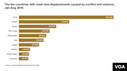 More than 10 million people have been displaced across the globe in the first half of 2016, with Syria, Yemen and Turkey topping the list, according to estimates compiled by the Internal Displacement Monitoring Center (IDMC).