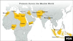 Muslim-Americans say over the years anti-American feelings in the Middle East are also caused by frustration with U.S. foreign policy towards Israel. Spokesman for the Islamic Center of Southern California, Dr. Maher Hathout says the violent acts of protesters do not represent the teachings of the Prophet Muhammad.