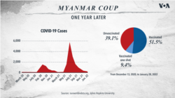 Myanmar will mark a bitter one-year anniversary of the military’s February 1, 2021, coup Tuesday amid a rising toll of dead and displaced from fighting between junta forces and a stubborn armed resistance that denies the regime complete control of the country.