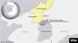 South Korean officials said the projectiles were fired from the city of Wonsan and had a range of 180 kilometers.