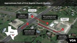 Investigators from the Federal Bureau of Investigation and the Bureau of Alcohol, Tobacco, Firearms and Explosives have joined local law enforcement officers in Sutherland Springs, about 50 kilometers from San Antonio, to investigate.