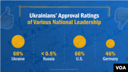 "Perception of Russian leadership has tanked, with less than 0.5% of Ukrainians now approving of Russia's leadership," Reinhart told VOA. "Views of Russia's key ally China are also quite poor; 14% of Ukrainians approve of China's leadership, down from 36% in 2021."