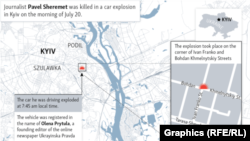 Ukrainian media reported that Pavel Sheremet, 44, a reporter with the country's top online news website Ukrainska Pravda, died when a blast tore through the car he was in as he prepared to go to work. Images from the scene showed a charred vehicle with all four doors open.