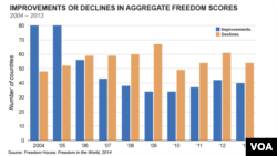 Arch Puddington, vice president for research at Freedom House, told VOA the most significant declines in freedoms were caused by terrorism.