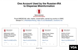 "We certainly are still seeing a lot of the accounts that we're looking at that continue to have what seemed to be clear military connections," Bret Schafer, a social media analyst for the German Marshall Fund of the United States' Alliance for Securing Democracy, told VOA.