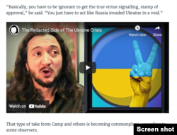 Yet despite being canceled as part of RT America’s sudden shutdown, episodes of Camp’s shows are still available on YouTube, including a February 28 episode about Ukraine, during which Camp was critical of those calling out Russia without what he said was context and historical perspective.