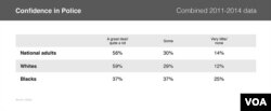 Gallup's combined data for the 2011-2014 period showed that while 59 percent of white Americans had confidence in the police, only 37 percent of African-Americans did.