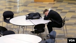 A 2014 report for the U.S. National Library of Medicine - part of the National Institutes of Health - reported that daytime sleepiness and irregular sleep schedules are common among college students.