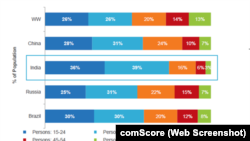 The same report said 75 percent of India’s online population was younger than the age of 35, significantly younger than in other BRIC countries.