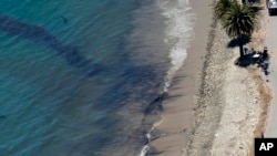 A U.S. Coast Guard spokeswoman said the spill spans about 15 kilometers of coastline. Since cleanup efforts began Wednesday, more than 6,000 gallons of oil have been collected.