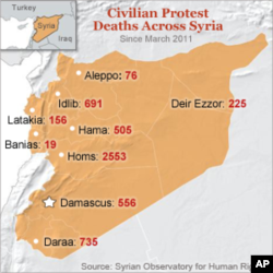 The U.N. said more than 7,500 people have been killed since the revolt began last March. Syrian officials blame the uprising on foreign-backed armed "terrorists" who, the government says, have killed more than 2,000 security personnel.
