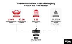 The states' complaint alleges Trump's emergency declaration is illegal and unconstitutional, and harms the states and their residents by taking money away from anti-drug programs, military construction projects and other law enforcement efforts. Trump is planning to reallocate $8 billion in funding from various U.S. agencies to build the border wall.