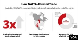 Trump had made criticism of NAFTA a centerpiece of his successful 2016 election campaign, terming it the worst trade deal in history and blaming NAFTA for the loss of American manufacturing jobs since it went into effect in 1994.