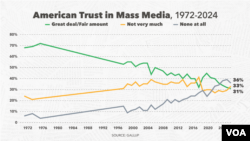 Last month, Trump’s presidential campaign sent VOA a statement that Republican National Committee spokesperson Taylor Rogers originally provided to the conservative news site The Daily Caller. In it, Rogers described Trump as a “champion for free speech” and said that “everyone was safer under President Trump, including journalists” because of “commonsense law.”