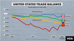 China denounced the new tariffs on its exports, with Beijing saying it would challenge them at the World Trade Organization and take unspecified “countermeasures.” The U.S. had a $279 billion trade deficit with China in 2023, the largest figure for any of its trading partners.