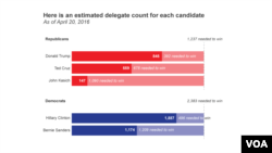 The two rivals face off in more nominating contests on Tuesday, in the northeastern states of Connecticut, Delaware, Maryland, Rhode Island and Pennsylvania.