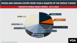 Russia is the world's leading wheat exporter. Ukraine is number five. Together, they grow up to a third of the world's wheat exports.