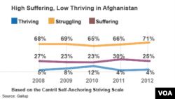 The survey showed the percentage of Afghans describing themselves as "thriving" was steady at 4 percent.