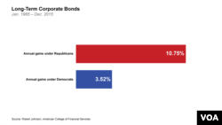 "Bonds do much better under Republican presidents than under Democratic presidents," he said. "Corporate bonds returned on average 10.75 percent. Under Democrats, corporate bonds only returned 3.52 percent so there was over a 7 percent difference."
