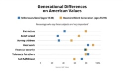 The values that Americans view as important have shifted over the last two decades, as younger Americans place less significance on patriotism, religion and having children.