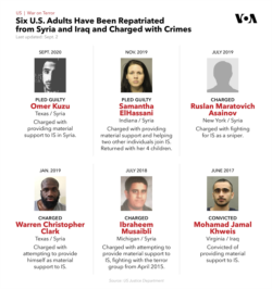 “The Department of Justice remains committed to holding accountable those who have left this country in order to join and support ISIS,” Assistant Attorney General John Demers said in a statement Wednesday, using an acronym for the terror group. “We hope countries around the world, including our European allies and partners, will likewise take responsibility for their own citizens who traveled to support ISIS.”