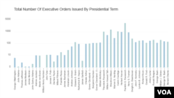 President William Henry Harrison, who died just 32 days into office, issued none. While Obama's predecessor, George W. Bush, issued 291 executive orders during his eight years in office.
