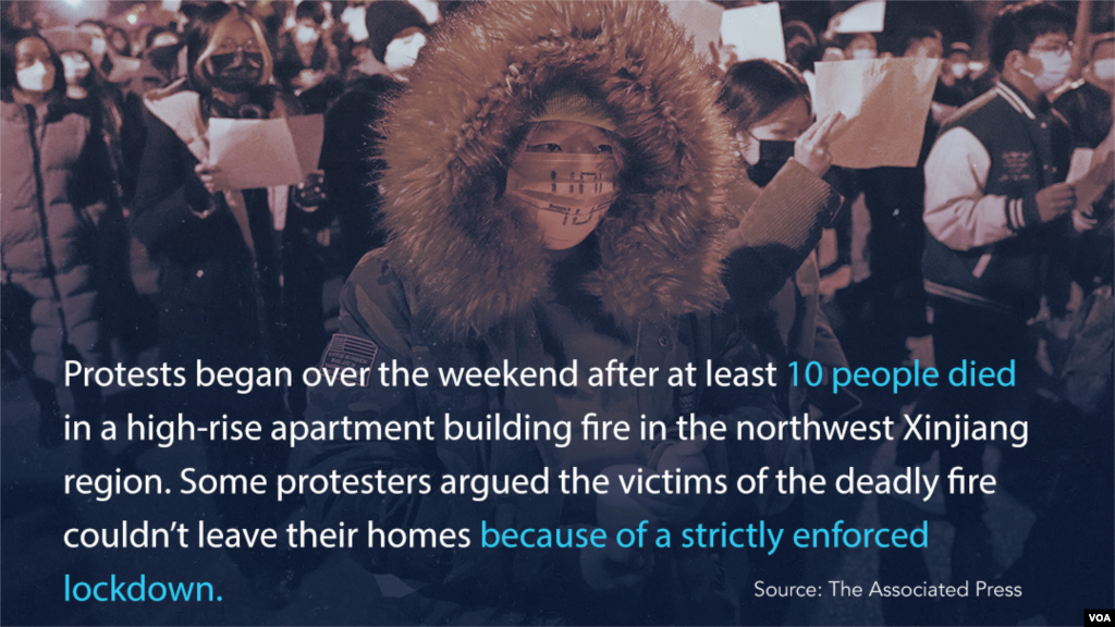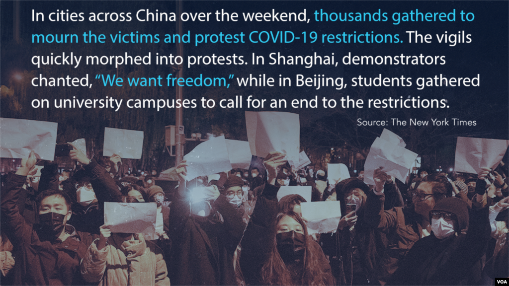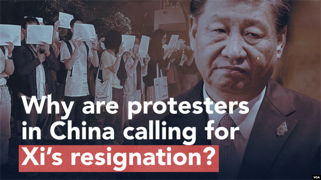 Outrage over strict COVID-19 lockdown restrictions in China has prompted rare protests across the country. Many say they are frustrated with the Communist Party and its leader, President Xi Jinping, over regular lockdowns as part of its “zero-COVID” policy. Some are going as far as calling for Xi to resign.