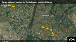 A spokesman at the U.S. embassy in Harare told VOA the streets appeared calm overnight Wednesday and had no confirmed sightings of military vehicles. The embassy warned Americans via its web site to "shelter in their residences" and work from home on Wednesday. They said the embassy will be minimally staffed and closed to the public.