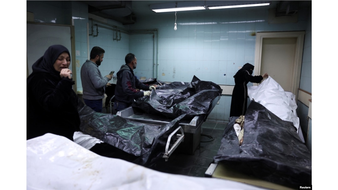 People look at bodies, believed to be of prisoners from Sednaya prison, according to forensic official Zaher al-Taqesh, at the Al Mojtahed hospital, after rebels seized the capital and ousted Syria's Bashar al-Assad, in Damascus, Syria, Dec. 10, 2024.