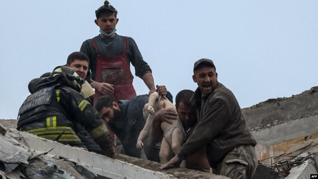 A child was pulled alive from the rubble but died on the way to a hospital, Daria Zarivna, a senior official in Ukrainian President Volodymyr Zelenskyy's office, said. Kyrylenko also said people were believed to be trapped under the debris.