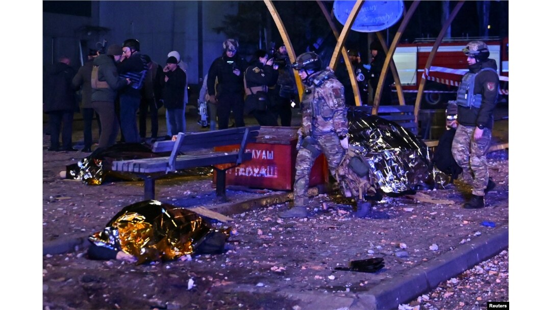 Bodies of the victims and people injured in the attack were strewn across a road and adjacent paved areas next to damaged public transportation facilities. The debris hit a tram and a bus with passengers inside, Ukraine’s prosecutor general’s office said.